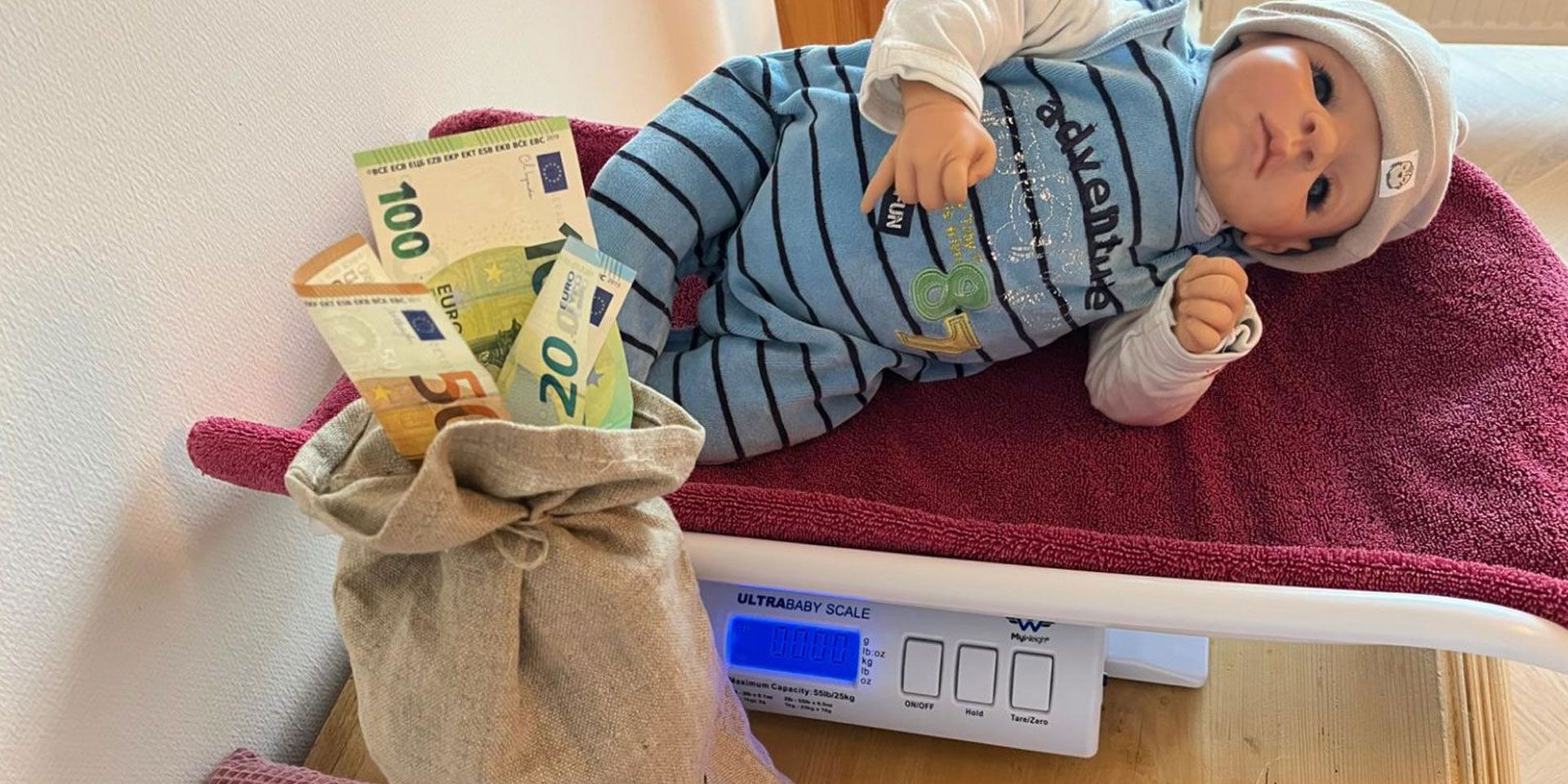 Wir würden gerne – mit eurer Mithilfe – das Gesamtgeburtsgewicht, aller vom 01.01.25 bis zum 31.10.2025 bei uns im Haus geborenen Kinder (176497 Gramm), in Cent „aufwiegen“!